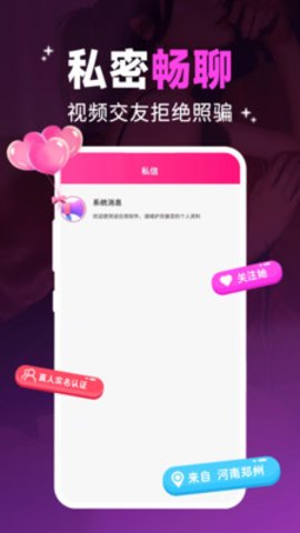 1、此外这个应用程序还提供了真实认证功能,包括自拍认证、语音认证、视频认证,可以让你查看同城附近妹子的资料,即时聊天,找到自己的cp。