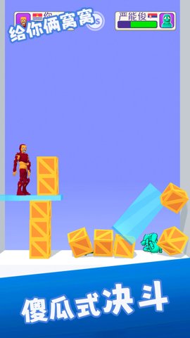1、给你俩窝窝是一款趣味十足的游戏,玩家需要拖动布娃娃的四肢,击中敌人。