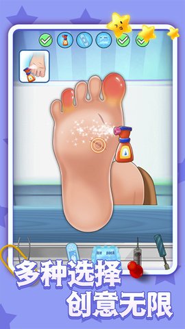 2、玩家需要使用不同的工具对其脚进行修整,并在规定内完成任务。