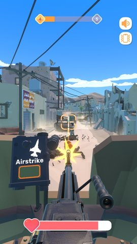 2、游戏的操作非常简单,只需要通过手指滑动屏幕来控制机枪的方向和射击。