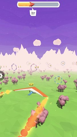 2、玩家可以体验刺激的滑翔比赛,挑战自己的极限,享受飞行的乐趣。