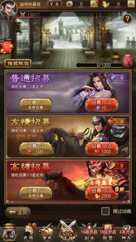 2、游戏中有丰富的名将收集培养系统,让玩家能够更好地体验三国历史中的著名战役。
