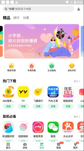1、同时新增“软件”频道,让用户找软件更加方便。