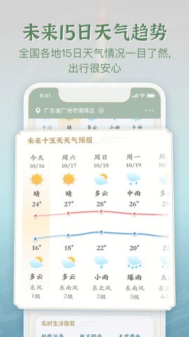 1、安心天气国风版提供了每日天气预报和未来7天的天气趋势数据,让用户能够及时了解未来的天气情况,做好出门准备。