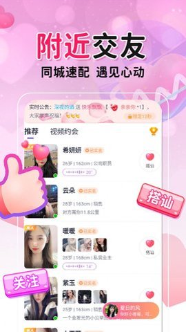 1、附近配对约会App提供了合适方便的交友平台,让用户能够更加轻松地找到自己心仪的约会对象。