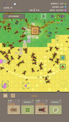 1、玩家需要建造自己的基地,并招募蚂蚁进行训练和升级。
