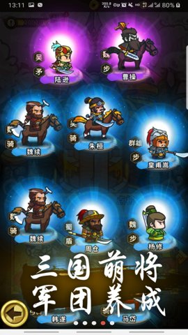 3、游戏中有300多位来自三国的著名萌Q登场,32种单兵兵种进阶,玩家可以组成自己的梦想军团。