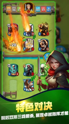 2、在3条战线上与其他召唤师展开激烈的对抗,争夺最终召唤师的霸权!游戏以3-5分钟的快速对局为特点,让玩家在紧张刺激的战斗中体验到策略卡牌游戏的无尽魅力。