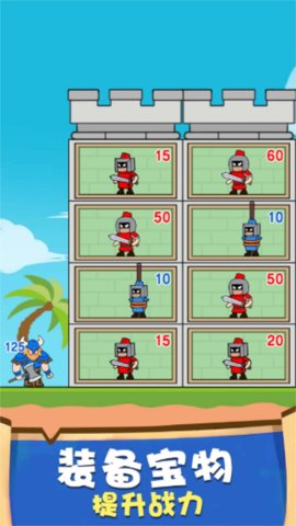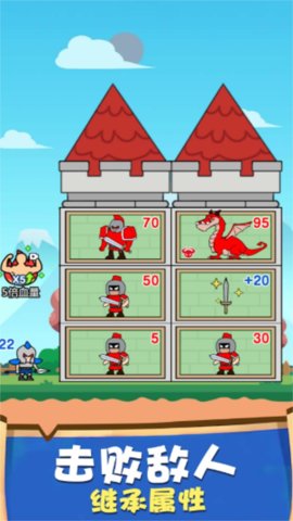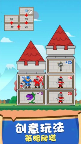 3、这是一款超烧脑的策略爬塔游戏,开局只有一个小兵,需要通过升级小兵来闯到更高的层数。