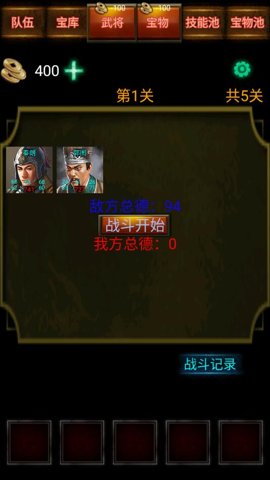 1、在单人模式中,玩家可以通过不断地挑战关卡来提升自己的实力,同时还可以解锁更多的武将卡牌和装备。