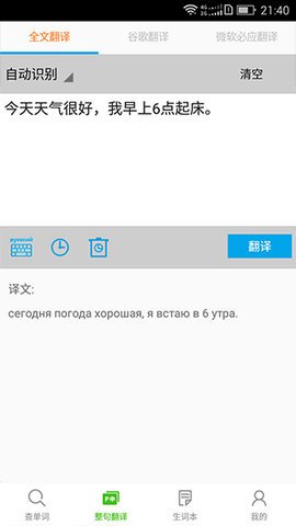 1、此外它的翻译功能也十分强大,除了软件本身的翻译功能,联网同时还可查看谷歌翻译与微软必应翻译的翻译结果。