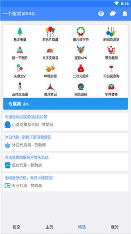 一个奇鸽船新体验App是一款功能强大的手机工具聚合软件,包含了各种实用功能,如qq专区、支付宝转账、余额图生成、界面修改等。qq专区提供了各类qq空间和qq相关的刷赞和辅助工具,可以帮助用户更好地管理自己的qq账号。同时界面修改功能可以对手机的图标界面进行修改替换,让用户的手机界面更加个性化。