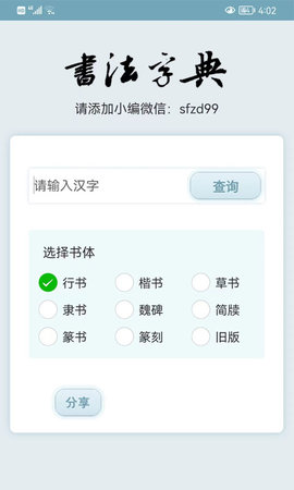 书法字典是一款非常实用的软件,用户可以通过它在线查询历代书法家的作品。这些作品涵盖了草书、行书、楷书、篆书、隶书等多种书体,数量达到了数以十万计的单字书体写法。书法字典还包含了王羲之和米芾等著名书法家的书法字典,为用户提供更加全面的学习资源。