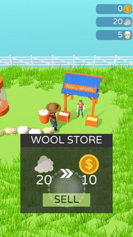 1、这款游戏采用经营类的放置游戏方式,玩家需要不断地喂养小绵羊,获得羊毛,并将其卖出获得金币。
