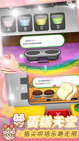 2、游戏中还有面糊和烘烤站,针对较小的屏幕重新设计了面糊和烘烤站,玩家可以轻松添加衬垫,倒入面糊,并像纸杯蛋糕大师一样烘烤纸杯蛋糕。