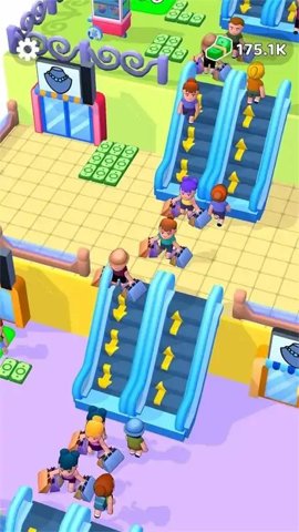 1、使用您的游戏内货币解锁新的自动扶梯并进入更高的楼层。