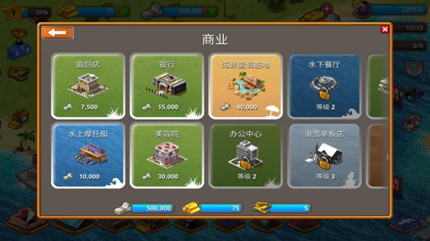 1、游戏中的建筑物是不可或缺的,缺少后玩家会少获得大量的收益。