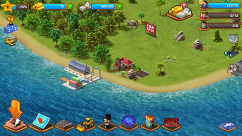 2、而且游戏采用十分卡通的游戏画风,画面超高清,所有的场景布置全靠玩家规划!玩家必须合理规划建筑物的位置和数量,才能使城市发展更加迅速。
