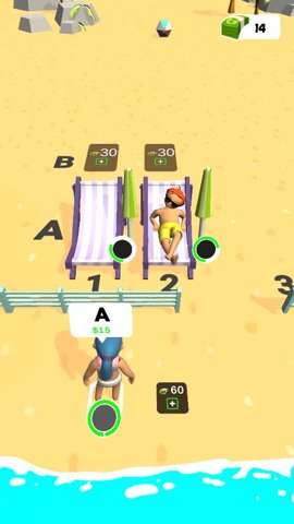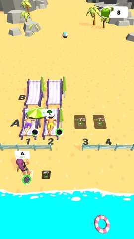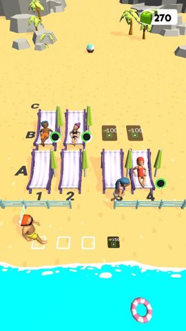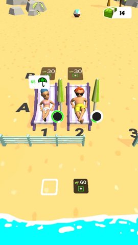 2、玩家需要扩建面积,增加遮阳伞数量,让每个游客都享受到服务。