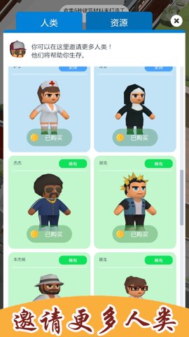 1、游戏采用了卡通末日生存建造游戏的风格,画面精致,小人物栩栩如生,资源丰富,建造庇护所,发明与升级,探索城市。