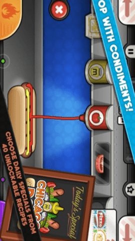 3、老爹的热狗店中的每一个动作都很流畅,你可以看到美味的汉堡包在你的手中。