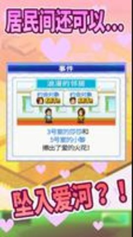 幸福公寓物语国际版是一款由Kairosoft开发的模拟经营手游,玩家需要经营一家公寓,满足各种各样住户的需求,装饰公寓,提升公寓的舒适度来吸引更多的住户,同时升级房间给住户提供更好的生活环境。