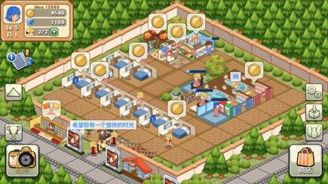 1、玩家还需要经营整个度假村,利用各种办法来提升自己的客流量,并将度假村进行升级。