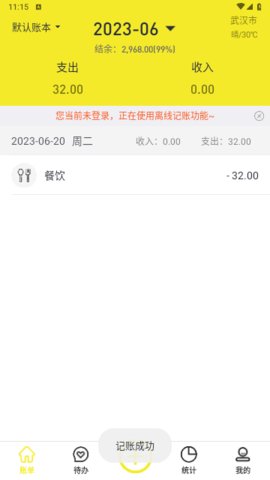 1、傻瓜记账有记账提醒功能,当用户忘记记账时,它会及时提醒用户,避免因为疏忽而出现数据丢失。