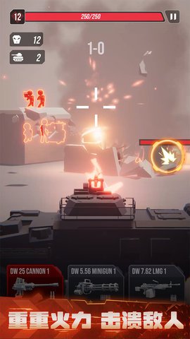 2、游戏中的操作方式简单易上手,玩家只需要点击屏幕就可以驾驶坦克,瞄准射击消灭敌人。