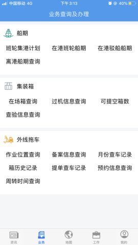 1、易港通提供了丰富的查询服务,包括船舶装卸查询、出入境门查询、码头装船查询、VGM信息查询等。