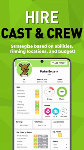 2、玩家需要建立自己的影视,招募工作人员,策划电影剧本,选择演员,设置发布并开展活动,争取最佳的开幕周末。