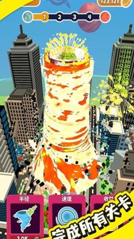 3、游戏还拥有不断提升龙卷风等级的机制,让玩家的卷起物品变得越来越强大,能够摧毁更大更坚固的物体,带来不同的体验。
