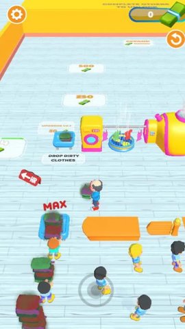 干洗店热潮是一款非常有趣的模拟经营游戏,玩家可以扮演一名干洗店老板,为顾客清洗衣物,赚取游戏奖励。游戏中,玩家需要使用各种洗衣机器来完成服饰的清洗工作,赚取更多的绿钞。同时玩家还需要收集脏衣服,清洗干净来获取报酬。