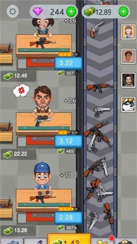 3、通过出售这些武器来赚取金币,继续扩大枪支生产线,最终成为军火帝国的老板。