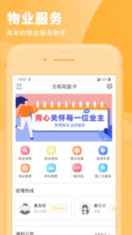 1、用户可以获取小区公告,快速报修、投诉建议,实现贴心管家服务。