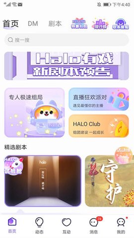 3、Halo有戏是一个集剧本杀、社交互动、音乐娱乐等多种玩法于一体的应用,让你随时随地都可以结识有趣的好友并且一起组局,寻找你的剧本杀打本搭子。