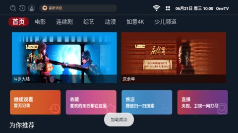 2、OneTV还加入了直播频道,让你了解版本更新情况和最新影视动态。