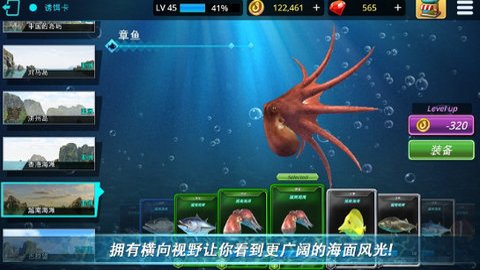 1、游戏中的神秘海洋里有各种各样的生物,玩家永远无法想象下一秒会捕捉到样的生物。
