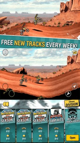 1、这款超刺激的体育竞技游戏,玩家可以掌握各种摩托技巧动作,如加速冲坡、空中回旋翻滚、高空飞跃降落等等,让人十分有成就感。