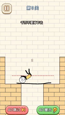 2、画线的方式也需要注意,最好是画直线或者简单的形状,避免过于复杂,否则可能会导致火柴人无法通过。