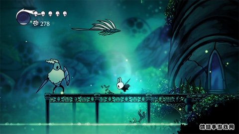 1、游戏中的2D操控非常连贯紧凑,玩家需要躲避攻击,向前冲刺,并使用骨钉技艺击败致命的敌人。