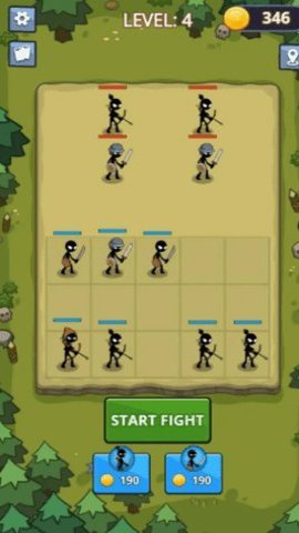 1、玩家需要不断地合成强大的火柴人进行战斗,消灭所有敌人才能获胜。