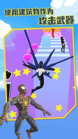 2、毒液大战蜘蛛侠游戏中的操作非常简单轻松,玩家可以操纵蜘蛛侠或毒液在赛道上狂奔。