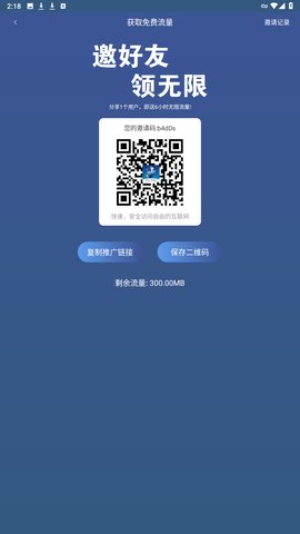 2、此外每次用户登陆蚂蚁加速器都会赠送300mb的流量,用户还可以通过分享来获取无限流量,非常实惠。