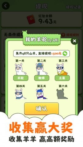 3、羊羊爱消消游戏签到有红包领,邀请好友有额外的奖励,完成羊羊爱消消的消除关卡也有福利拿!多种赚钱方式让玩家在游戏中不仅能够享受乐趣,还能够获得一定的奖励。