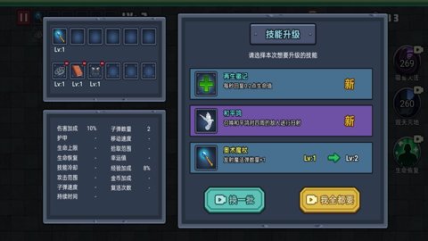 2、玩家可以自由选择技能属性,搭配出不同的流派,挑战难度更高的boos,看看自己能够在这里存活多久。