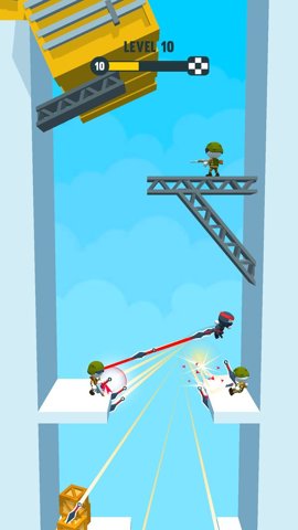 2、游戏中会有很多敌人在关卡中等着你,你需要通过你的技术将他们一一击杀,成功到达关卡的终点,完成挑战。