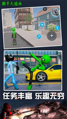 猎手大追杀是一款基于火柴人开发的开放式动作游戏。游戏的画面非常精美,场景设置也非常逼真。每个任务都有独特的场景和任务目标,需要玩家用不同的战术和方法来完成。游戏分为多个任务,玩家需要完成这些任务来提升等级和获得更多的装备和技能。