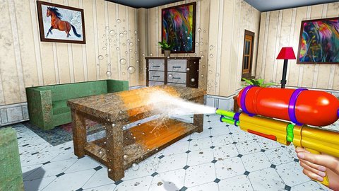 电动清洗模拟器是一款有趣的游戏,它为玩家提供了一种全新的清洁体验。游戏中,玩家将拥有一把高压水枪,可以用它清洗任何看不惯的污渍。不同的清洁工具对应不同的清洁效果,让玩家能够体验到意想不到的乐趣。