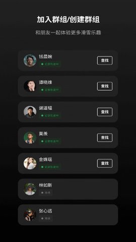2、滚兽还提供了群组功能,让滑雪爱好者可以随时随地分享自己的滑行轨迹到群组里面,和朋友一起体验更多滑雪乐趣。